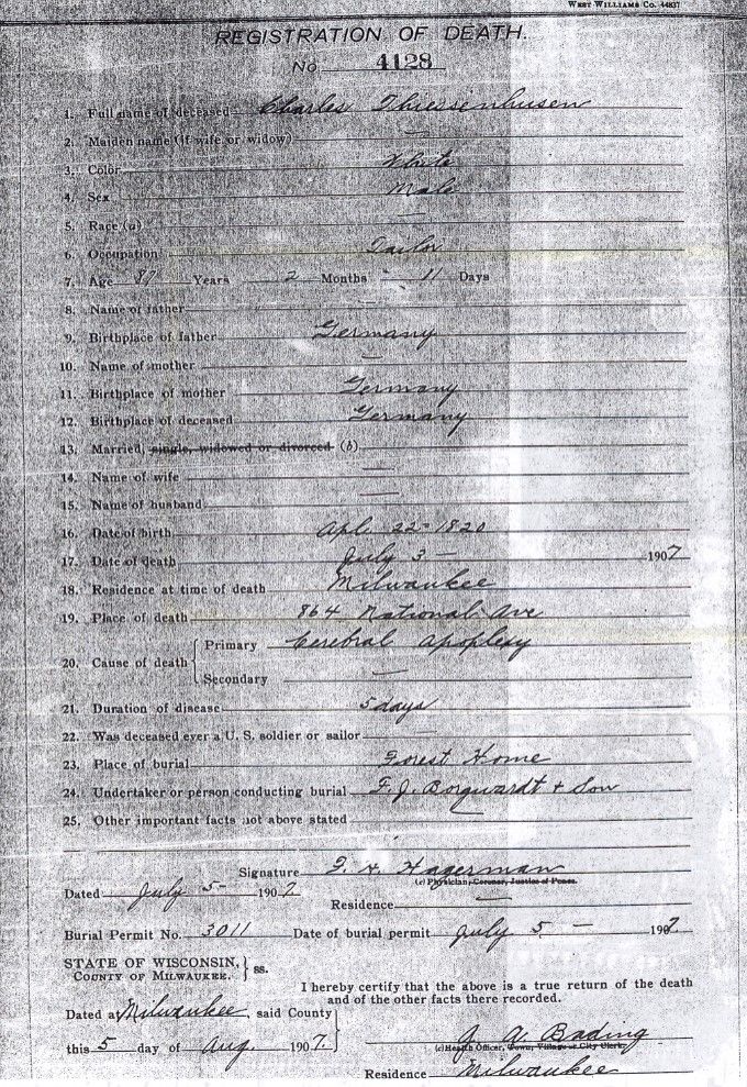 This death notice appeared in a Milwaukee newspaper July 1907.