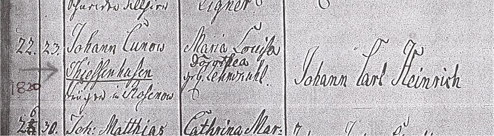Taufe von Johann Carl Heinrich Thiessenhusen