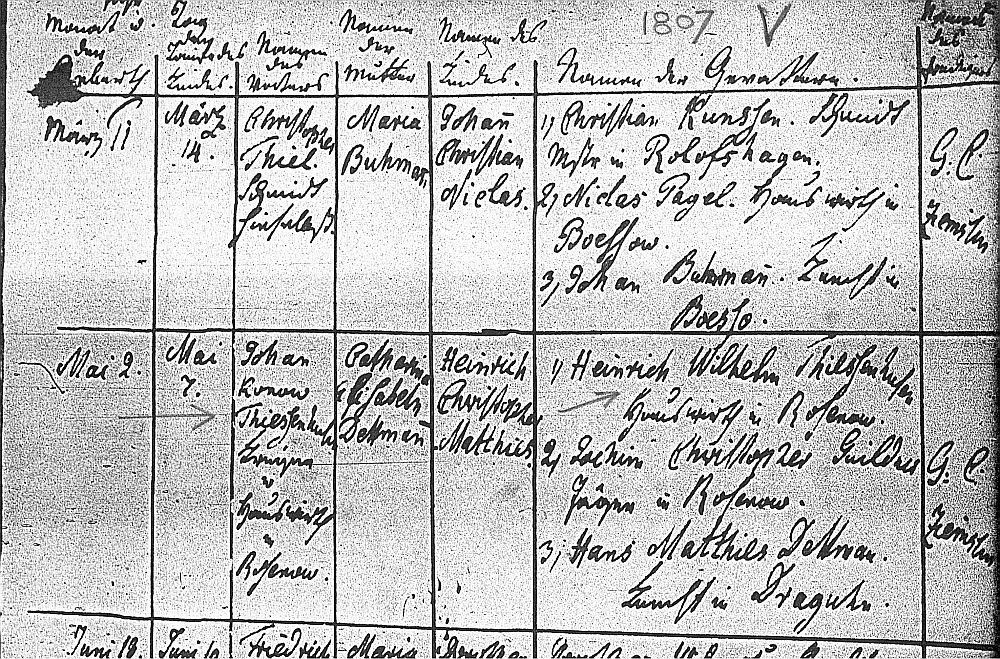 Heinrich b. 1807 and Elisabeth b. 1813 (Kneser) Thiessenhusen had five children: Catharina, b. September 1833; Elisabeth, b. May 1835; Sophia, b. May 1837; Wilhelmina (“Minna”), b. March 1839; and Heinrich, b. February 1845.