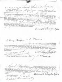 Antrag auf Einbürgerung (zwei Seiten) von 1850 und 1856. Beachte die Unterschriften: C. Kneser war ein Pate. Heinrich heiratete Elisabeth Kneser in Deutschland.
