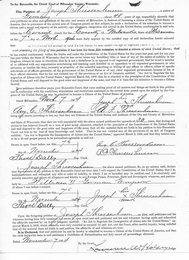 Photo: Joseph Thiessenhusen Petition for Naturalization, 1904