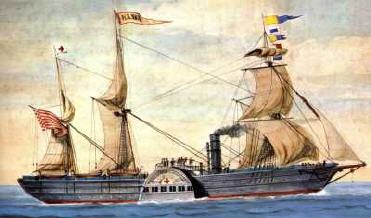 Wilhelm und Elisabeth (Flägel) Thiessenhusen und ihre Kinder, Marie und William, segelten auf der "Hansa" am 29. Oktober 1853 nach Amerika. Mit ihnen kamen Heinrich und Elisabeth (Kneser) Thiessenhusen sowie ihre Kinder children Dorothea, Elisabeth, Sophia, Minna und Henry. Die “Hansa” war ein deutsches Schaufelrad- und Dampfschiff. Es war das dritte ozeantaugliche Dampfschiff, das in Ameika gebaut worden war. Ursprünglich hieß es “United States.” Die raue Fahrt der Thiessenhusens von Bremen nach New York durch stürmisches Wetter dauerte 20 Tage. Das Bild zeigt ein Gemälde des Schiffes.