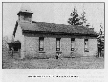 Dies ist eine Großaufnahme der Kirche in der Racine Avenue. Die Thiessenhusens besuchten die Gottesdienste hier von 1865 bis 1880. Obwohl Kirche und Pfarrhaus 1955 abgerissen wurden, blieb der Friedhof erhalten. Der wird heute von der New Berlin Historical Society gepflegt.