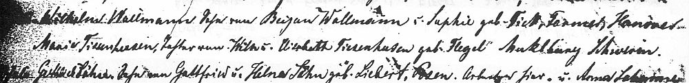Maria Thiessenhusen and William Wollmer, Wedding Citation, 24 August 1864: Maria Thiessenhusen and William Wollmer married at St. Peter’s Lutheran Church, 1214 South 8th Street, in Milwaukee, Wisconsin. (Notice the mispelling of “Wollmer.”) |