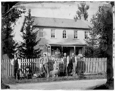 Marie Thiesenhusen, das älteste Kind von Wilhelm und Elisabeth, heiratete 1865 George William Wollmer. Ihre Kinder sind William, George und Mary. Die Erwachsenen in der Mitte sind Mary Thiesenhusen Wollmer, George Wollmer und Adolph oder Ferdinand (?) Wollmer (Georges Bruder). Ihr Bauernhof befand sich in der National Avenue in Greenfield, Wisconsin. Das Foto ist von 1885.
