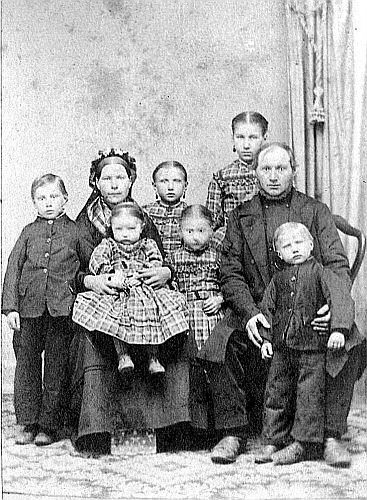 Ricka Garbe war ungefähr 11 Jahre alt als dieses Foto gemacht wurde. Sie steht hinten in der Mitte. Rechts von ihr ist ihre Mutter Anna. Carl und Anna Kruth Garbe hatten 8 Kinder; 6 sind auf diesem Foto, das 1871 gemacht wurde. Die Familie lebte in Raymond, Racine County, Wisconsin.